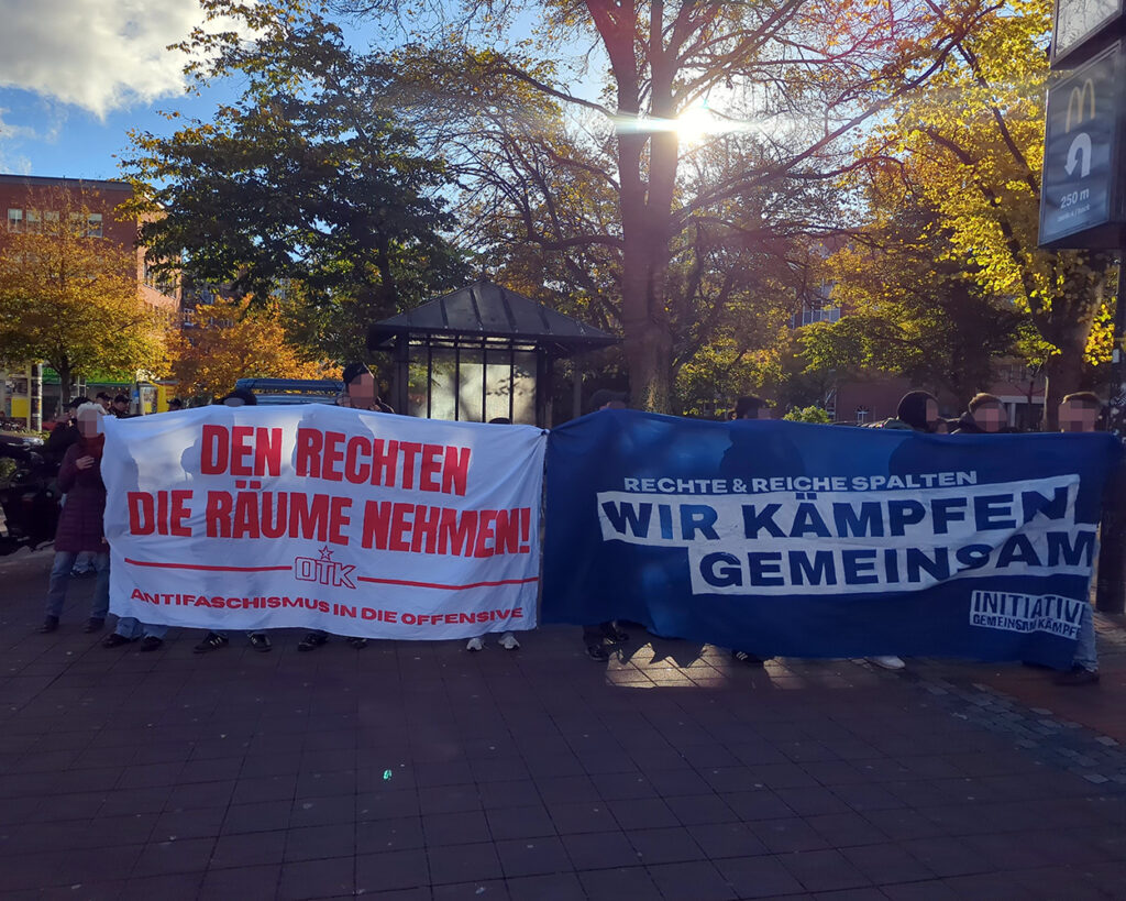 Am Samstag (18.10.2025) hielt die AfD im Kieler Stadtgebiet das dritte Wochenende in Folge Propagandastände im Rahmen des laufenden OB-Wahlkampfs ab. Diesmal führten die Rechten zwei parallele Stände am Europaplatz in der Innenstadt und am Kurt-Schumacher-Platz in Mettenhof durch. Beide wurden von antifaschistischen Gegenprotesten begleitet.
