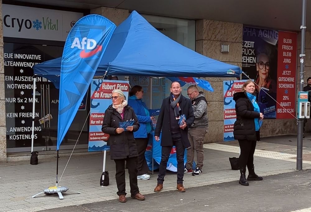 Zwei Wochen vor der Kieler OB-Wahl am 16.11.2025 belästigten AfD-Kandidat Hubert Pinto de Kraus und sein Gefolge gleich zweimal die Holstenstraße Höhe des TK Maxx-Gebäudes nahe Bootshafen in der Kieler Innenstadt mit Propagandaständen.