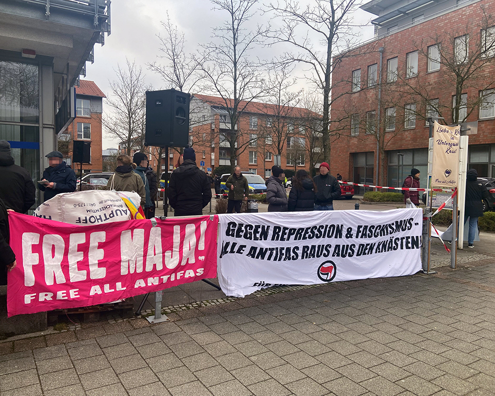 Auch wenn Wadephul selbst sich in seiner dicken Limousine direkt zum Hintereingang kutschieren ließ, konnte in Redebeiträgen der Antifaschistischen Gruppen aus Schleswig-Holstein und der Family and Friends aus Hamburg darauf aufmerksam gemacht werden, wie grauenhaft Majas Situation weiterhin ist und welche Verantwortung Wadephul daran trägt. In einem weiteren Redebeitrag der Turboklimakampfgruppe Kiel wurde beleuchtet, dass es deshalb keinesfalls eine Option sein kann, nur mit dem Finger auf rechtsautoritär regierte Staaten wie Ungarn zu zeigen, sondern es auch die repressiven Entwicklungen hierzulande zu bekämpfen gilt.