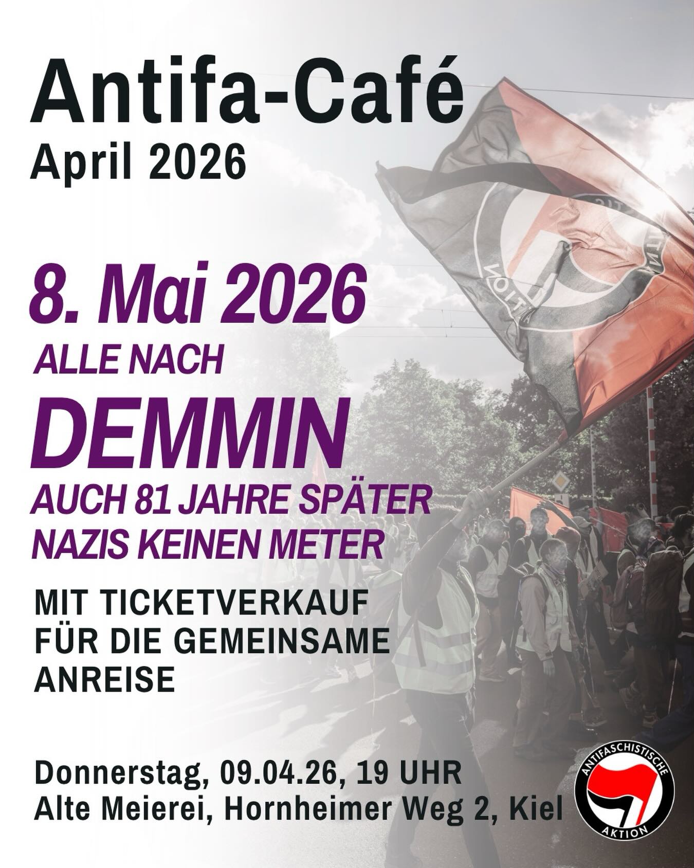 Donnerstag, 09.04.2026 | 19 Uhr | Antifa-Café @ Alte Meierei (Hornheimer Weg 2) | Kiel