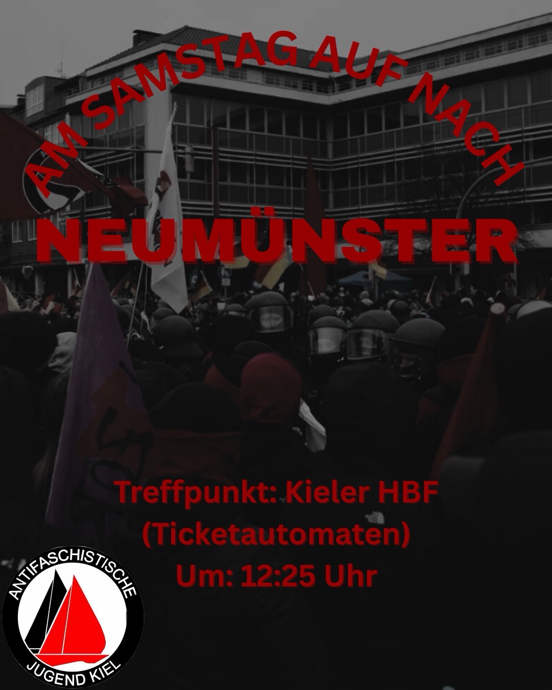 Am Samstag will die Resterampe um die Partei „Die Heimat“, vormals NPD, in Neumünster eine Kundgebung abhalten. Das lassen wir nicht unwidersprochen! Deswegen fahren wir am Samstag nach Neumünster, um gegen die Hetze und Lügen der Neonazis zu protestieren. Kommt mit!