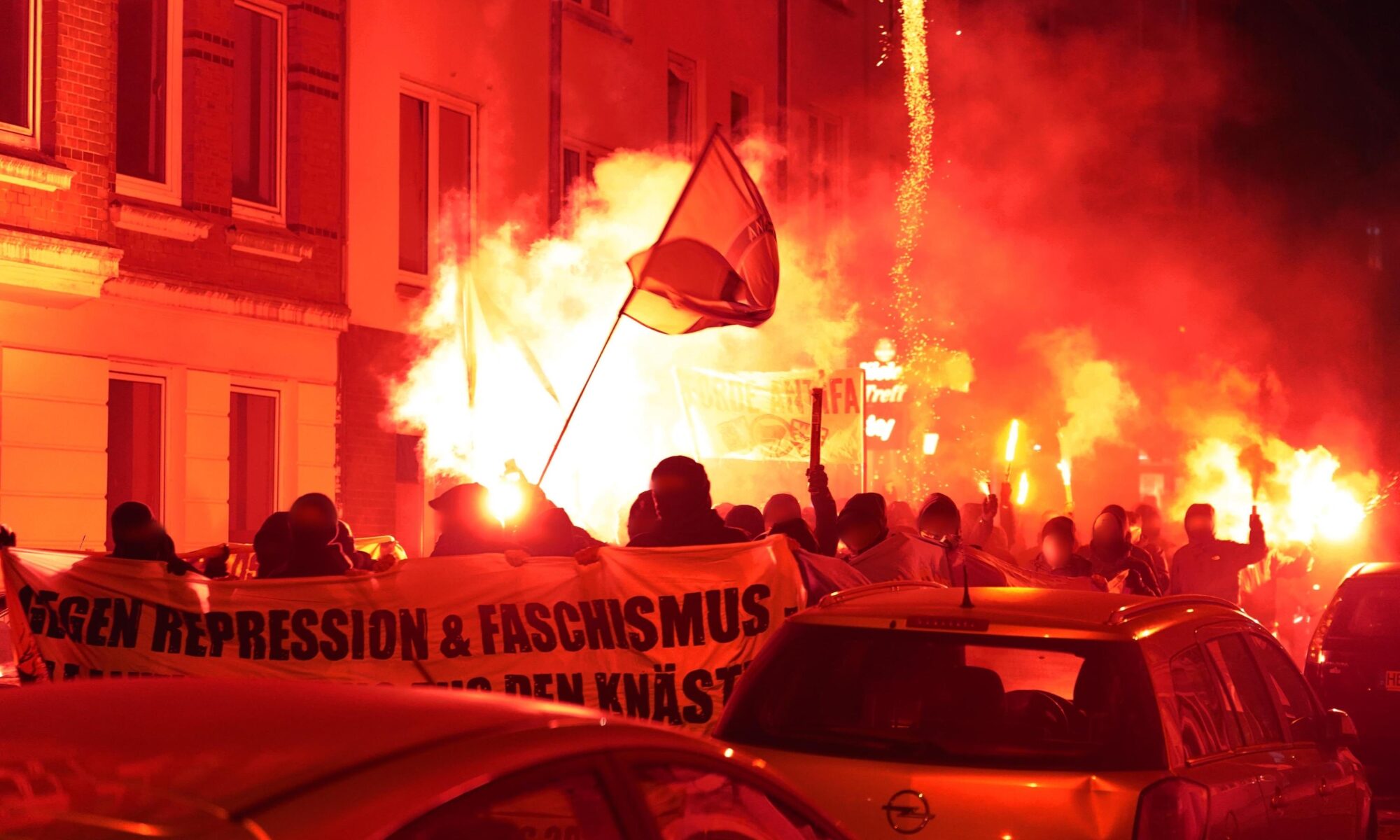 Unter dem Motto „Gegen Repression und Faschismus – alle Antifas raus aus den Knästen!“ zogen etwa 60 Antifaschist:innen am frühen Samstagabend unangekündigt, unangemeldet und kämpferisch durch Kiel-Gaarden. Anlass war die entgrenzte staatliche Repression in der BRD, mit der sich die antifaschistische Bewegung sowie sämtliche emanzipatorische und revolutionäre Kräfte auch im zurückliegenden Jahr herumschlagen mussten.
